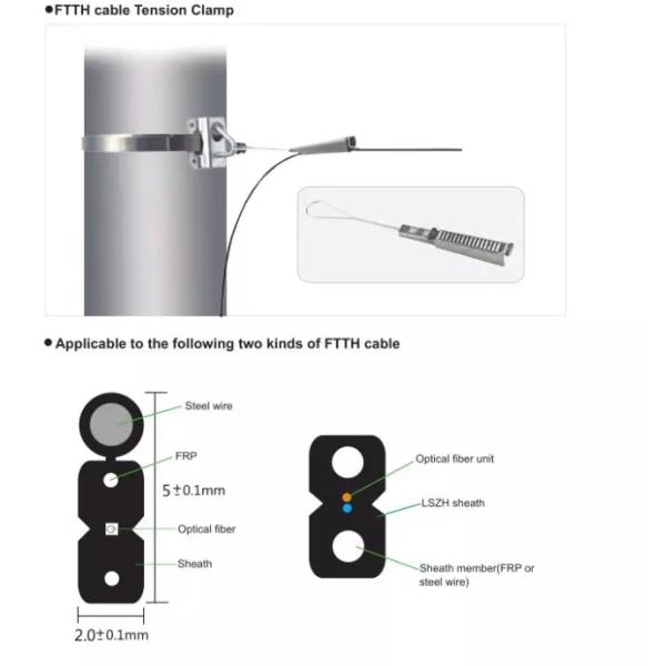FTTH Drop Fiber Cable Wire Clamp is used to connect an overhead fiber cable to optical devices or a house, widely used indoor/outdoor installation.